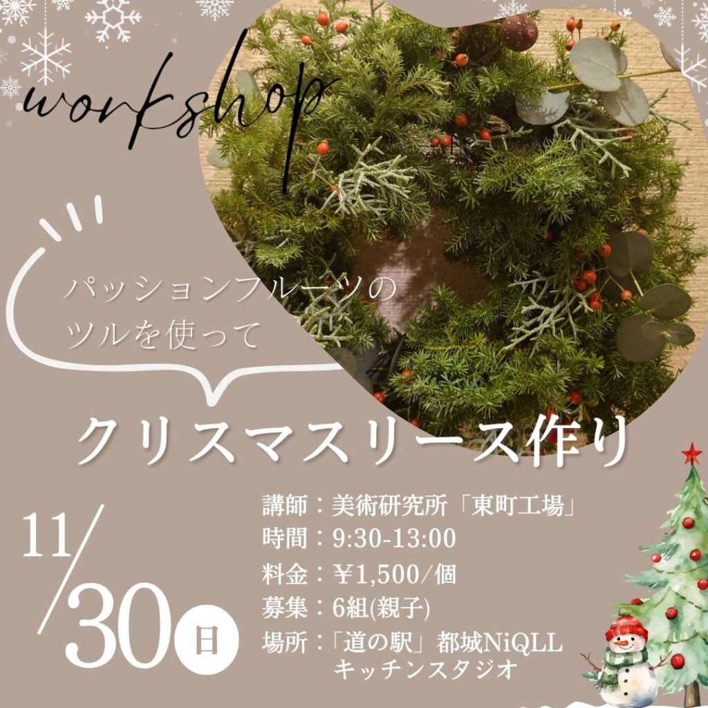 もうすぐ楽しいクリスマス🎄🎅♪ニクルでは、親子でかわいいクリスマスリースを作れる教室を開催いたします! パッションフルーツの蔓(つる)を使用した...
